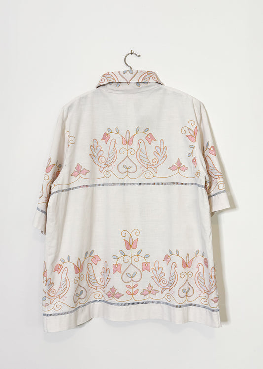 LOVE BIRDS EMBROIDERED SHORT SLEEVE SHIRT