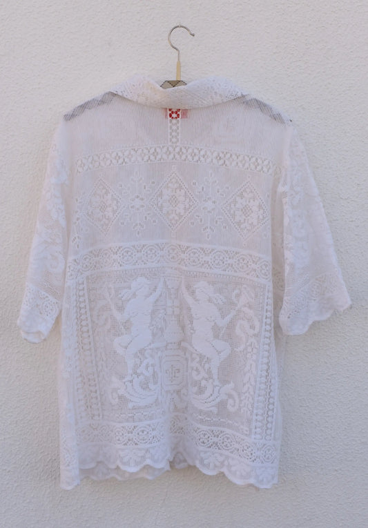 CAMISA DE MANGA CORTA DE ENCAJE DE DIOSA